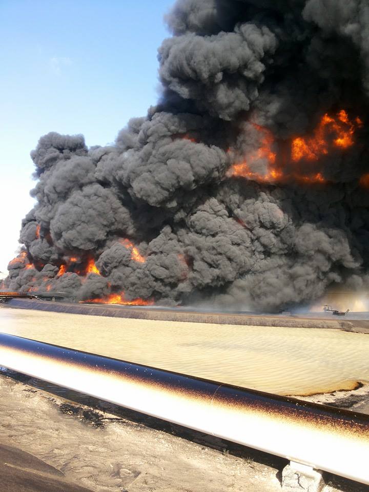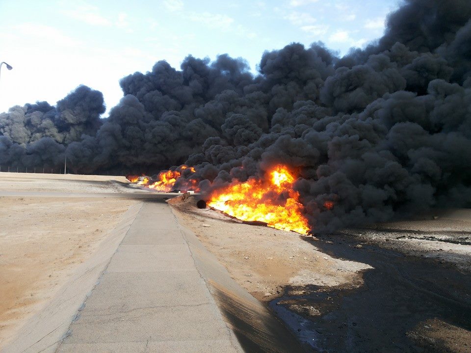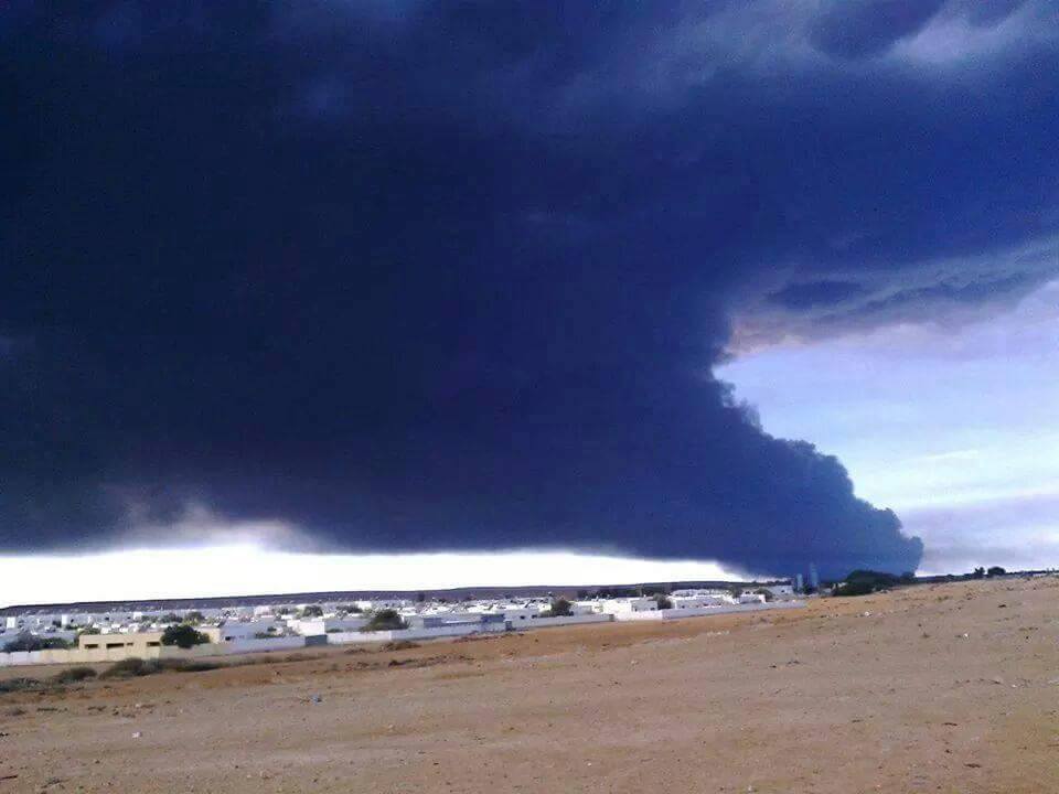 - قصف خزانات النفط بطريق المطار واحتراقه لأيام معدودة.