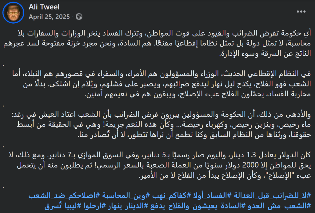 أي دولة تحتاج إيرادات وتنظيمًا، المشكلة في غياب البديل الإنتاجي.